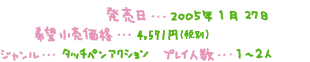 Nintendoロゴ 発売日…2005年1月27日 希望小売価格…4,571円(税別) ジャンル…タッチペンアクション プレイ人数…1〜2人