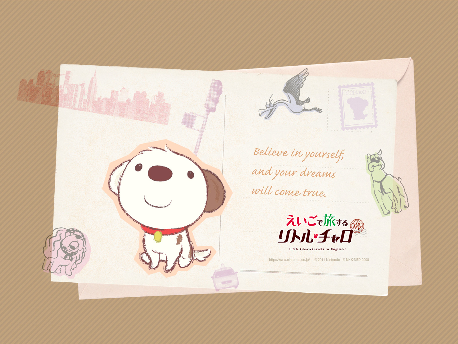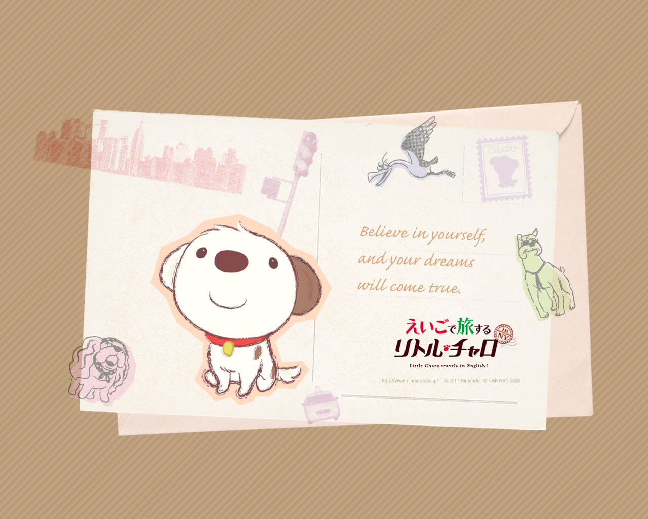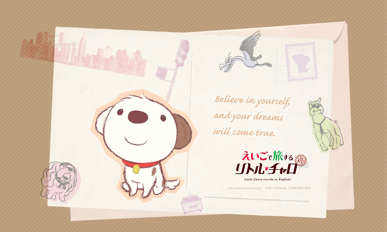 『えいごで旅する リトル・チャロ』のオリジナル壁紙です。PCの壁紙に設定してお楽しみください。