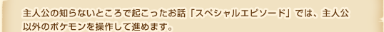 主人公の知らないところで起こったお話「スペシャルエピソード」では、主人公以外のポケモンを操作して進めます。