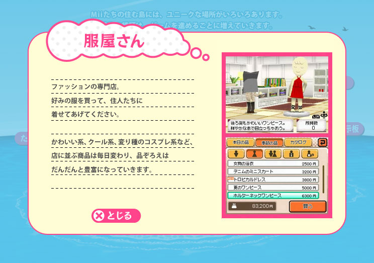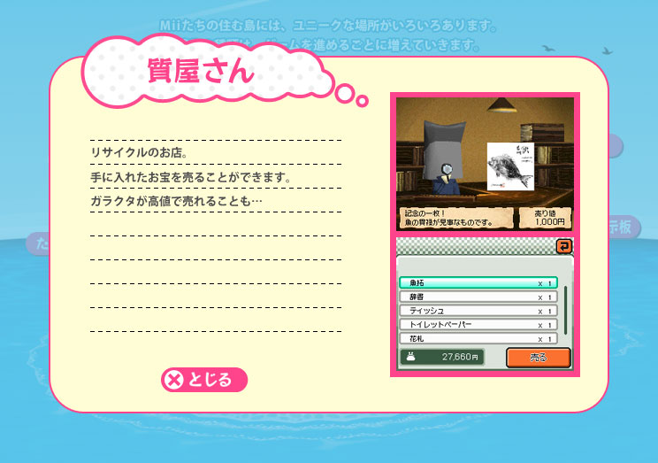 マンション 市役所 たべもの屋さん 恵みのふんすい 服屋さん インテリア屋さん Miiニュース 相性テスター 質屋さん 質問ホール 適職の館 ランキング掲示板