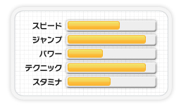 スペシャルアクション:プリンセスダッシュ(ダッシュ系)ハートを出しながら加速します。/空中浮遊(ジャンプ系)空中を浮遊して移動します。/ピンクハートシュート(アイスホッケー)スティックのまわりを大きなハート型の光を放ちながらシュートします。