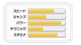 豪快なパワーと大胆な演技で金メダルをねらう。スピード競技も苦手ではない。