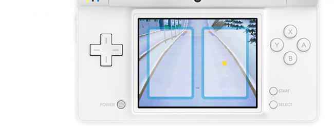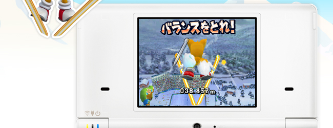 飛距離と空中バランス、着地タイミングで得点が決まり、2回ジャンプした合計得点を競います。ふみきりギリギリのタイミングで飛び出し、空中では画面の左右をタッチしてバランスをとり、最後にタッチペンを下にスライドして着地します。