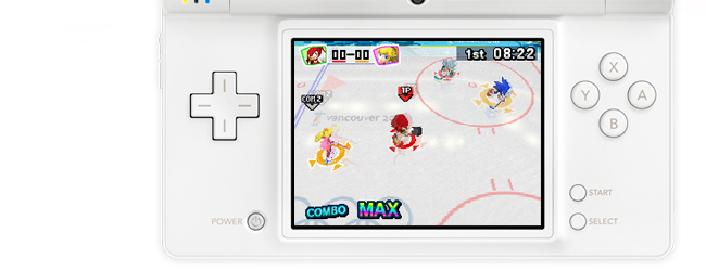 2人1組でチームにわかれて対戦。守備も攻撃もタッチペン1つでOK!ライバルにパックをとられないように、うまくパスをつないでいけば、コンボがたまりシュートの決定率がアップ!制限時間内で相手に負けないようにより多くのシュートを決めていきます。
