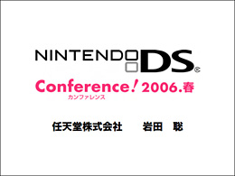 | 本日は、お忙しい中、多数の皆様にニンテンドーDSカンファレンスにお越しいただき、ありがとうございます。 |