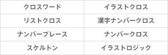 クロスワード イラストクロス リストクロス ナンバークロス 漢字ナンバークロス ナンバープレース イラストロジック スケルトン