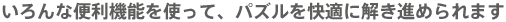 いろんな便利機能を使って、パズルを快適に解き進められます