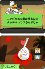 嵐で流されてしまったドードー鳥のエッグたちは、こわれやすいのに危険に対して全く無防備! 無邪気に転がって、ジャンプして、ニコニコしています。海岸、ジャングル、火山など全80ステージには、さまざまな危険が待ち構えています。正確なタッチペン操作と、お助けアイテムを利用して、エッグたちを無事巣まで導いてください。