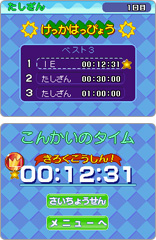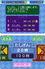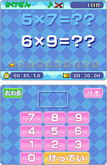 簡単なたし算、ひき算、かけ算をとにかく素早く解いていくことを目的とした基礎計算力養成ソフトです。 出題数が20問と100問の2つのコースがあります。ベストタイムに応じてメダルや称号がもらえます。セーブデータは最大4人まで登録でき、ほかのデータとのベストタイムランキングもあります。