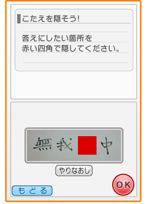 - DSiカメラで撮影した画像で、覚えたい内容の場所が変わっても、設定した目隠しの場所は、好きなときに変更することができるので、素材の再利用が可能です。