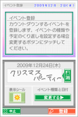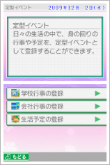 イベントを自分で書き込む「オリジナルイベント」や、入学式や給料日などのイベントがあらかじめ用意されている「定型イベント」の2種類からカレンダーに登録することができます。