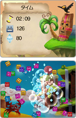 タッチペンでスクエアズを連鎖で爆発させて倒しましょう。倒すと出てくるダイヤを集めて高得点を狙いましょう。スクエアズを倒すときは、爆発によって毛玉たちを傷つけないようにしましょう。