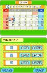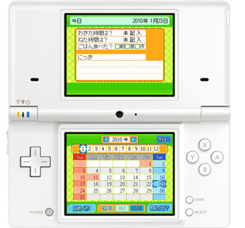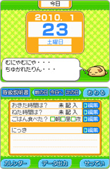キャラクターはプレイヤーの生活の記録に応じて元気よく育ったり、元気がなく疲れやすくなるなど変化します。規則正しい生活をし、キャラクターを元気よく育てましょう。