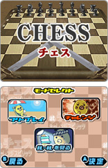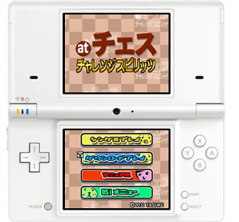 ほかにも、「待った」機能や、チェスファンの方にも楽しんでいただけるよう、ミッションクリアー型の「チャレンジモード」も搭載しました。ニンテンドーDSシリーズ本体がもう1台あれば、DSダウンロードプレイで対戦プレイも楽しめます。