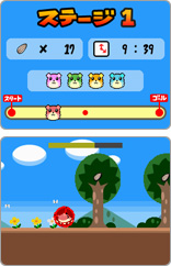 回し車(ホイール)に乗ったハムスターを操作して、「ひまわりの種」を集めながらゴールを目指す、横スクロールのアクションゲームです。