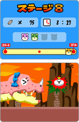 ステージ上には岩や穴、転がってくるボールなどの障害物があるほか、ボス生物がハムスターを待ち構えています。