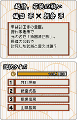 3分で天下統一を目指す「3分天下」、早押しクイズによる国取合戦「早取天下」などのモードがあります。
