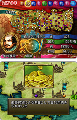 全国の好きな大名を選び、軍事、政治、外交とあらゆる要素を駆使して天下統一を目指すゲームです。アクション要素を盛り込んだ「局地戦モード」を搭載しており、タッチペンによる白熱したバトルも楽しめます。好きな武将を選択し、その武将のパラメーターはユーザー自身が振り分けることができ、さらにゲームを盛り上げます。