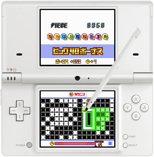 『囲んで消して ワクグミの時間』は、白と黒の2色のピースで囲みを作って消していくパズルゲームです。ピースを消すには、白のピースで黒のピースを囲むか、黒のピースで白のピースを囲みます。