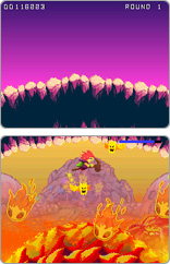 このゲームは、ホウキに乗った主人公アトレーユを操作し、敵や障害物を避けながら全6ステージを踏破する自動スクロールアクションゲームです。ボタンを押すと上昇し、離すと落下するアトレーユをうまく操り、障害物やさまざまな敵に当たらないよう全ステージクリアーを目指しましょう。