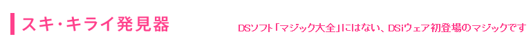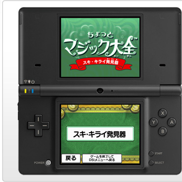 『ちょっとマジック大全 スキ・キライ発見器』は、DSiを使って不思議なマジックを演じることができるマジック実演ソフトです。