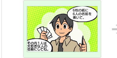 好きな人の名前や好きな食べものなど、相手の好みがわかってしまう、ちょっとうれしいマジックです。