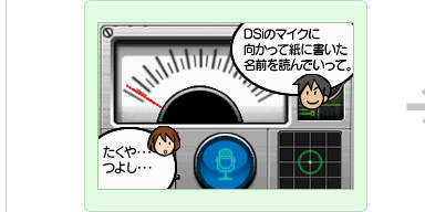 6枚の紙を用意し、1枚に好きなもの、ほかの5枚には嫌いなものを書いてもらいます。その6枚をよく混ぜてから、DSiに向かって1枚ずつ読み上げてもらいます。すると、好きなものがいわれた瞬間に発見器が反応し、それをピタリと当ててしまいます。