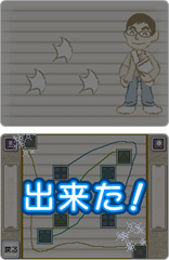 このパズルは複数解を持つ問題が特徴で、別な解き方を見つけた時に「ひらめき体験」ができます。タッチペンのみの操作で、原案の紙と鉛筆パズルの雰囲気を再現するアナログの感触にこだわりました。厳選された本編50問の他、ルールや操作に慣れるための練習問題を9問用意しました。