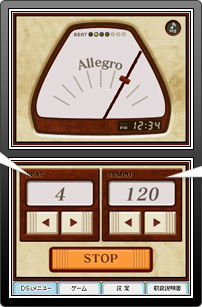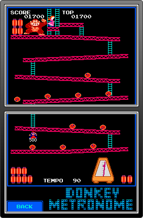 手拍子など音をだしてマリオをジャンプさせ、ドンキーコングが転がすタルを避けるミニゲーム、『DONKEY METRONOME』が収録されています。メトロノームに合わせてタイミングよく音を鳴らすのがコツです。