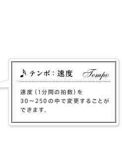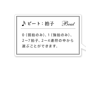 設定したビート(拍子)やテンポで、音を鳴らしながらリズムを刻みます。