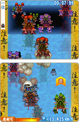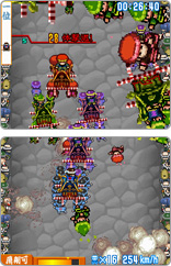 落とし穴や加速装置などさまざまなギミックが配置されたステージを、超スピードで颯爽と駆け抜けながら次々と敵を吹き飛ばしていく爽快感! 抜きつ抜かれつの激走バトルを制した先に現れる個性豊かなボス神輿たち!