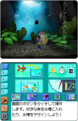 熱帯魚の飼育と、水槽内のデザインが楽しめる癒しと想像がテーマのゲーム。