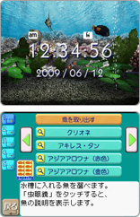・熱帯魚、クラゲ、クリオネ、金魚など40種類以上を収録。育てて繁殖に成功させると、飼育できる魚や水槽で使える置物が増えていきます。