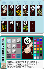 ・時計をデザインできるドットエディタを用意。イラストや文字がデジタル時計になります!