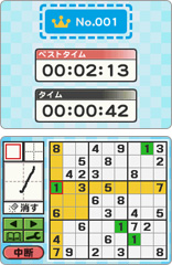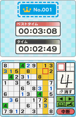 ゲーム中の数字の入力方法は、「手書き認識」と「パネル選択式」を選ぶことができますので、自分にあったスタイルでパズルのクリアだけに集中することができます。