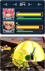 モードは全部で4種類。4人のCPU相手に勝ち進む「アーケードモード」、好きなCPUといつでも対戦できる「フリーバトルモード」、操作方法の練習に「トレーニングモード」、CPUとの対戦に満足できなくなったら、DSワイヤレスプレイを使って友だちと対戦できる「通信対戦モード」。