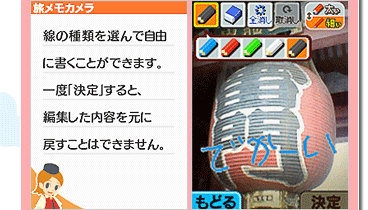 目的地についたら記念撮影。タッチペンで、写真にらく書きしてあなただけの思い出を 作成。