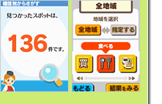 目的に合わせてスポットを探せます。地域を指定して探すことも可能です。