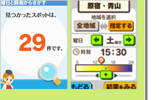指定した地域・曜日・時間帯に立ち寄れるスポットを探せます。
