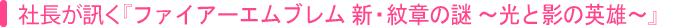 『紋章の謎』=『ファイアーエムブレム 紋章の謎』。1994年1月に、スーパーファミコンソフトとして発売されたシミュレーションRPG。シリーズ第3作目。