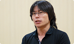 桜井政博さん=『星のカービィ』や『スマブラ』シリーズのディレクター。ハル研究所から独立し、Wii用ソフト『大乱闘スマッシュブラザーズX』を制作し、現在はニンテンドー3DS用ソフト『新・光神話 パルテナの鏡』を開発中。