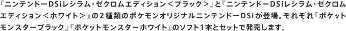『ポケモンブラック・ホワイト』の“オリジナルニンテンドー DSi”をソフトとセットで発売