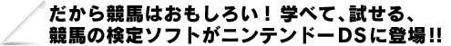 本ソフトは、サンケイスポーツが主催で2007年9月9日に実施される競馬の検定『競馬力認定試験 馬検』と好評発売中の公式問題集をベースとして、ニンテンドーDSの特長を生かし、さまざまな問題形式を追加した“学習系競馬ソフト”です。