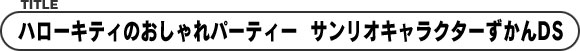 『ハローキティのおしゃれパーティー サンリオキャラクターずかんDS』は、サンリオの全キャラクターが300種類以上も収録されたキャラクター図鑑コンテンツをメインに、ハローキティの衣装着せ替えが楽しめる「おしゃれ」や「おかいもの」が充実。