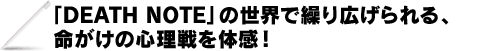 ・プレイヤーは“L”又は“キラ”の役となり、ゲームに参加。