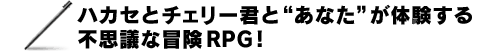 ハカセがゲームのナビゲーター、チェリーが主人公、そしてプレイヤー(=あなた)が2人の仲介役。ハカセはあなたの存在を知っていて、いろんなリアクションをしてきます。ゲームの世界に本当に参加しているような感覚を味わえますよ。