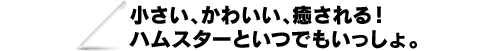 かわいいハムスターをDSで育ててみませんか?登場するハムスターたちは、ゴールデン、ジャンガリアン、キャンベル、ロボロフスキーの4種類、毛色のバリエーションはなんと全97種類!