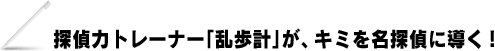 阿笠博士の新発明「乱歩計」。名探偵の能力を身につけることができる、探偵力トレーナーだ。名探偵に必要な能力のうち、判断力・分析力・集中力・記憶力・観察力といった5つの能力を豊富な問題で鍛えることができる!