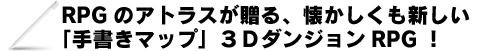 「RPGのアトラス」がそのノウハウをもってお贈りするRPG。方眼紙を片手に3DダンジョンRPGを攻略した「あの感覚」をタッチペン機能によりすべてのRPGユーザーにお届けします。音楽は古代祐三。キャラクターデザインは日向悠二。