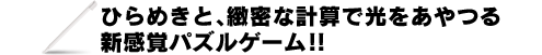 光をテーマにしたパズルゲームで、イルミネーションのパターンを作ってパズルを解き、120以上の用意されたパズルと、自動的に生成される事実上無限大のパターンがプレイ可能!!